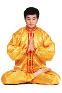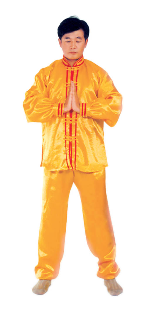 Thế dự bị: Toàn thân thả lỏng, lỏng nhưng không oải, hai chân đứng rộng bằng vai, đứng thẳng tự nhiên, hai chân hơi cong chùng một chút, đầu gối và háng trạng thái buông lỏng tự nhiên; cằm dưới hơi thu, lưỡi đặt hàm trên, răng hơi mở một chút, môi miệng khép lại, hai mắt hơi nhắm, nét mặt mang ý an hoà. Hai tay kết ấn, [sau đó] hợp thập.