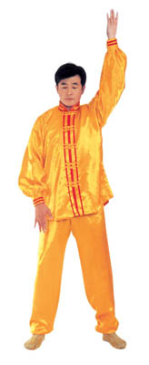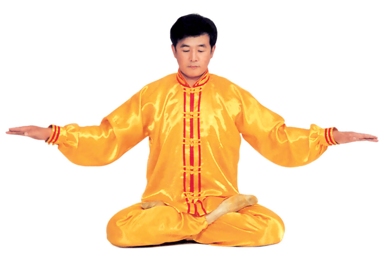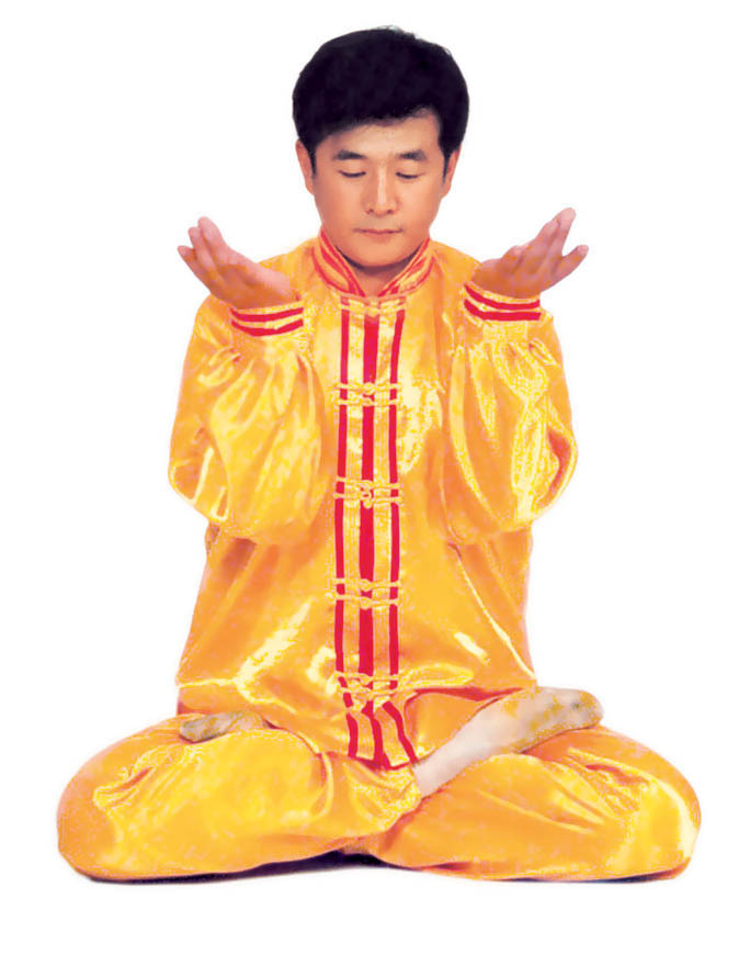 Trước lúc luyện công ý tưởng một chút rằng tự mình [như] là hai thùng rỗng rất cao lớn, sừng sững giữa trời đất, cao lớn không gì sánh được[16]. Khí bên trong [thân] thể thuận theo tay mà [chuyển] động lên xuống, xung lên khỏi đỉnh đầu, trực tiếp tới cực nơi cao nhất của vũ trụ; khí xung xuống sẽ qua từng chân mà xung ra, xung tới cực nơi thấp nhất của vũ trụ. Sau đó khí theo tay mà [chuyển] động, từ hai cực mà quay về trong [thân] thể, rồi lại xuất ra theo hướng ngược lại, lặp lại như thế chín lần. Khi xung quán tới lần thứ chín, thì tay trái (nữ tay phải) ở cực trên mà đợi tay phải (nữ tay trái) đưa lên. Sau đó [hai tay] đồng thời quay về hạ xuống quán nhập vào chỗ cực nơi thấp, [rồi lại] qua thân thể mà xung quán lên, sau khi lặp lại chín lần thì thu khí trở về. Sau khi thu trở lại, thì ở chỗ bụng dưới mà xoay chuyển Pháp Luân theo chiều kim đồng hồ, làm cho khí bên ngoài [thân] thể xoay trở về bên trong [thân] thể, sau đó kết ‘định ấn’[17], luyện công xong thì thu thế chứ không thu công.